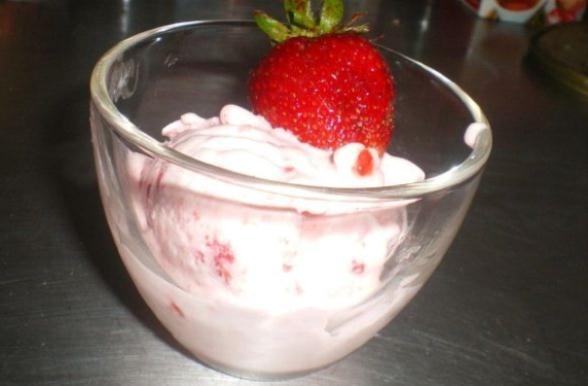 Cortar os morangos e deixar 30 minutos com açucar. Bater as natas até; ficarem fofas e juntar um pouco de açucar, desfazer os morangos com um garfo e juntar o sumo de limão, juntar natas e provar (se necessário juntar mais açucar). Depois vai ao congelador. Pode substituir os morangos por framboesas ou frutos silvestres (caso compre congelado deixar descongelar antes de juntar ao açucar).
