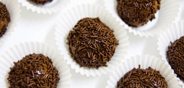 4º Quando a temperatura da massa o permitir, molde as bolinhas com as mãos, previamente untadas com margarina e passe as em seguida pelo chocolate granulado.