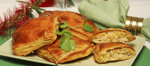 Reserve metade dos camarões, pique os restantes com uma faca, junte-os ao tacho, adicione um pouco de salsa picada e rectifique os temperos. Divida este creme pelo interior dos folhados, distribua o camarão cozido que reservou e sirva decorado a gosto e com as “tampas” de folhado por cima.